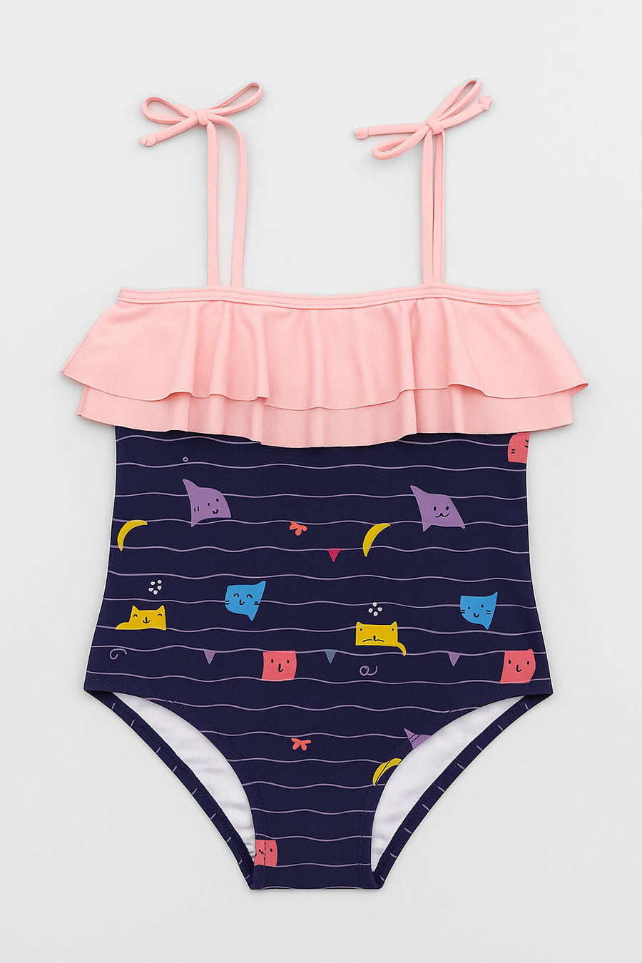 O maiô perfeito para sua filha brilhar! Confortável, estiloso e com babados encantadores. Ideal para praia e piscina.