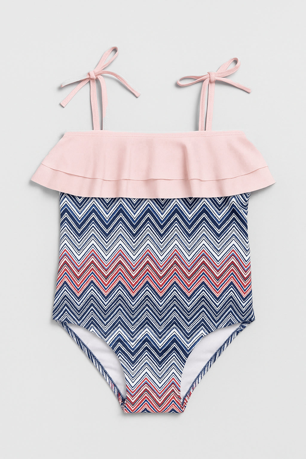 Os babados delicados dão um charme especial ao maiô, tornando-o perfeito para as pequenas fashionistas.
