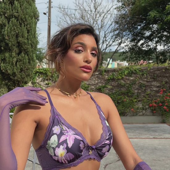 Delicado e sofisticado, este conjunto sem bojo em renda franzida e gloss acetinado garante conforto e um toque de brilho para seus momentos especiais.