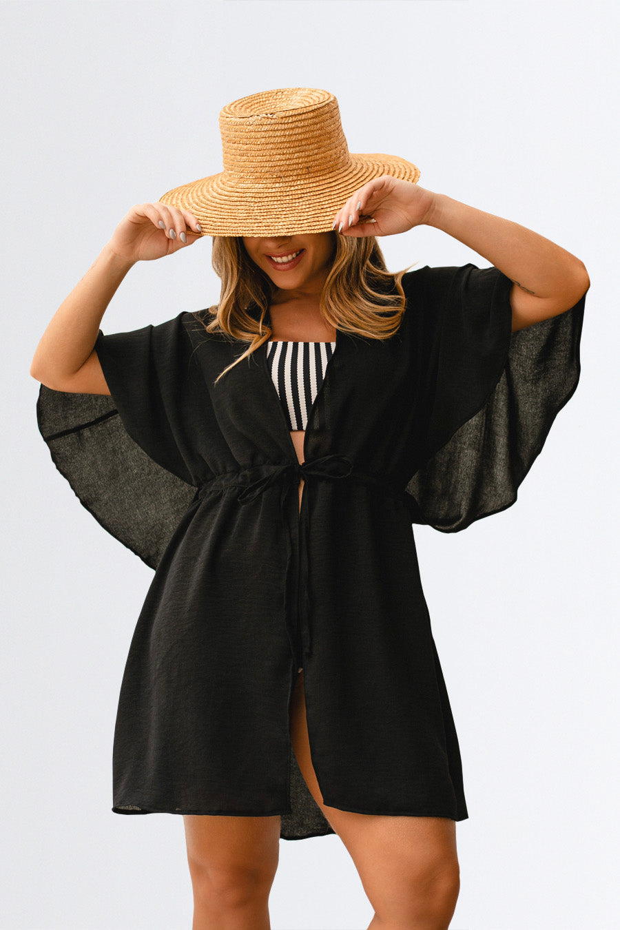 Com modelagem estilo kaftan, é perfeita para transitar da praia ao pós-sol com praticidade e charme. O detalhe em rolotê com tassel acrescenta sofisticação extra, tornando a peça indispensável para quem valoriza estilo sem esforço.