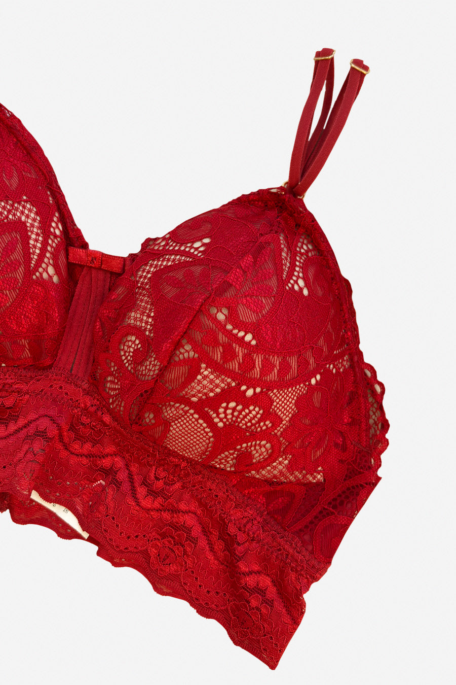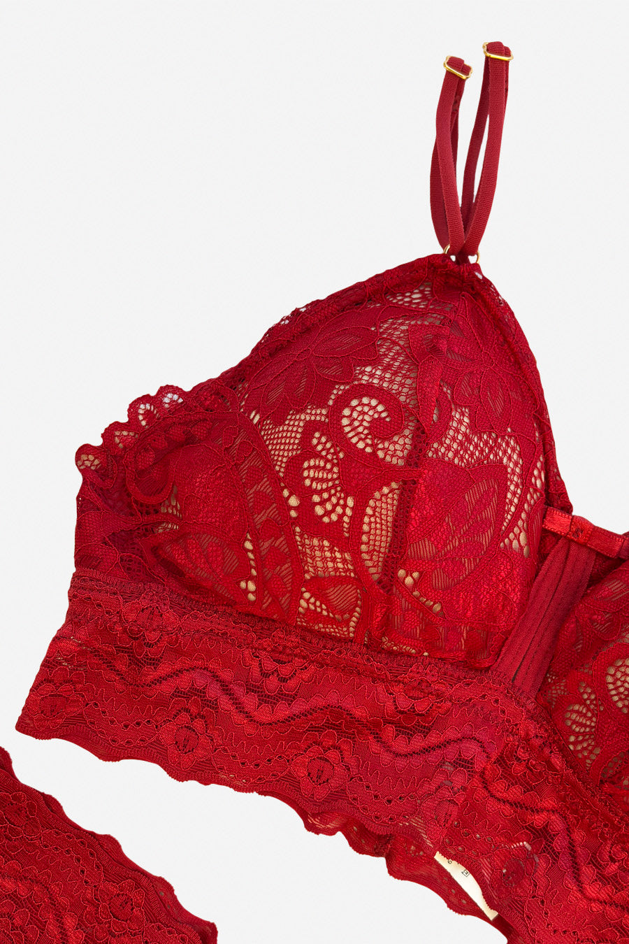 Desfrute do conforto e da elegância com o conjunto de sutiã de renda com bojo removível e calcinha biquíni da Nuance Lingerie. Perfeito para o dia a dia!